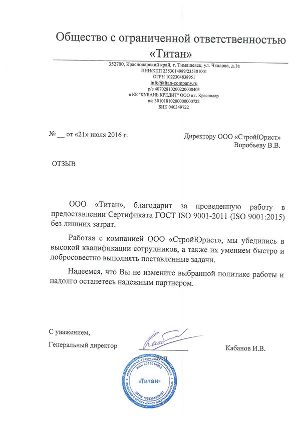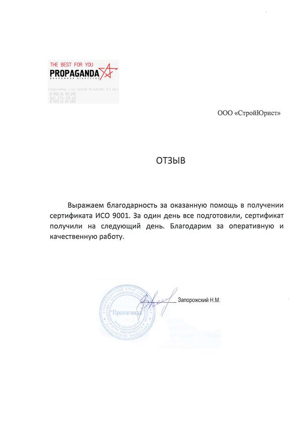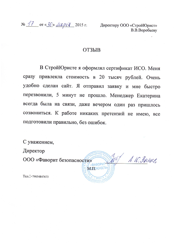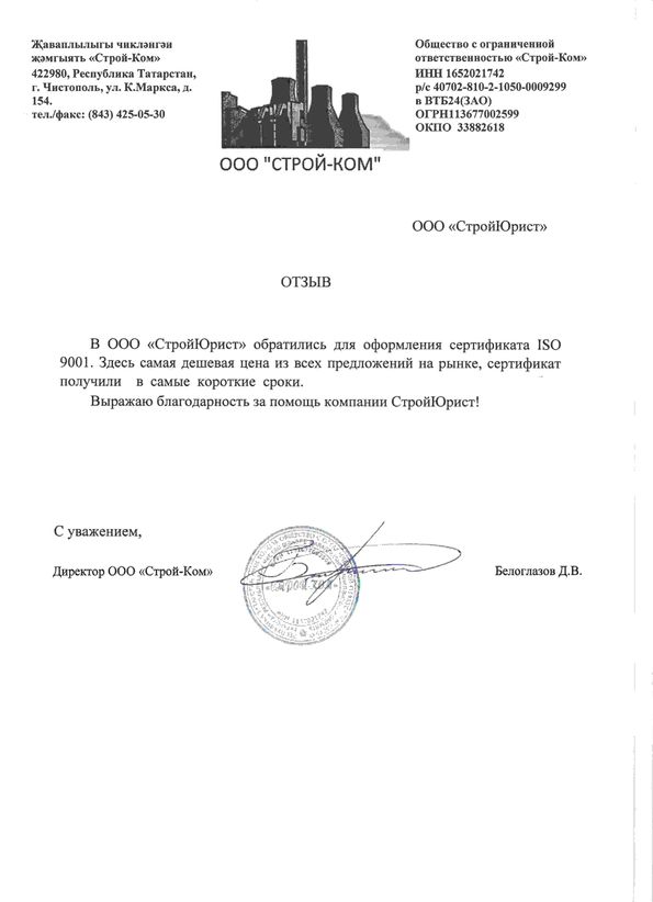 Отзывы клиентов "СтройЮрист" по ISO в Королёве