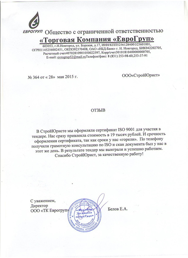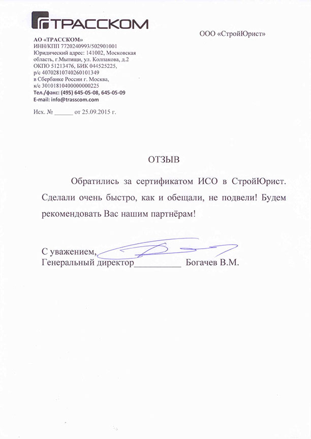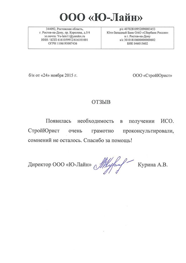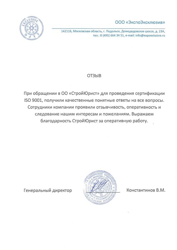 Отзывы клиентов "СтройЮрист" по ISO в Королёве