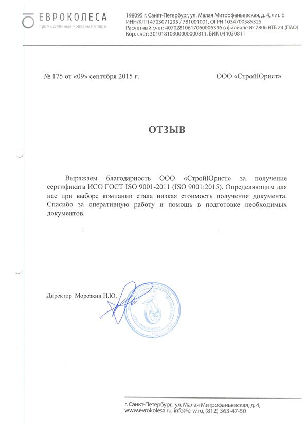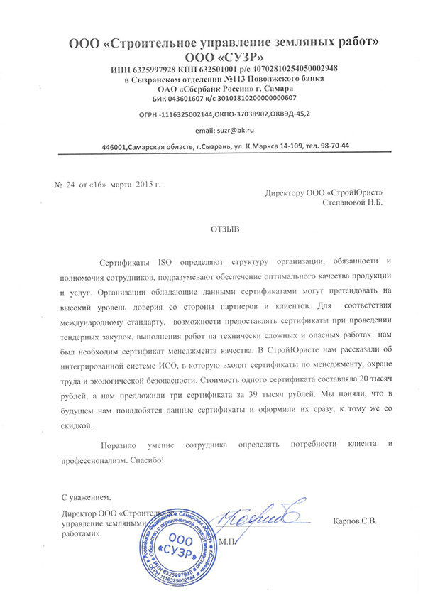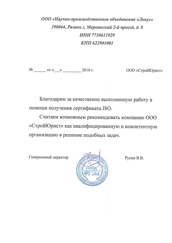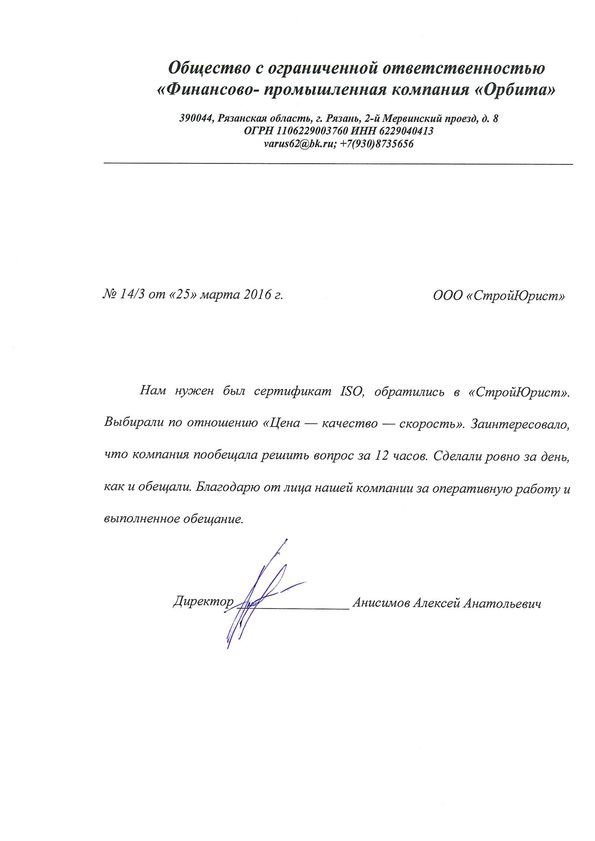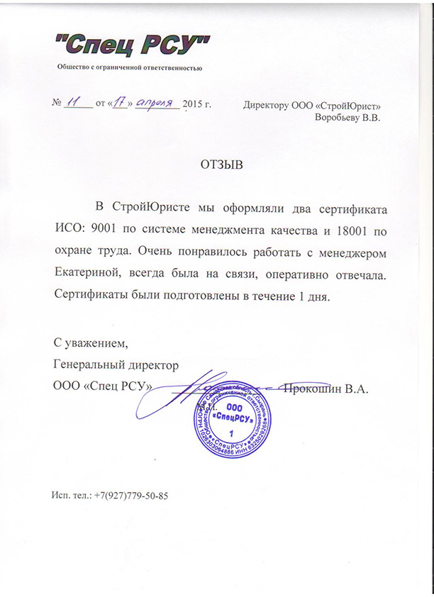Отзывы клиентов "СтройЮрист" по ISO в Королёве