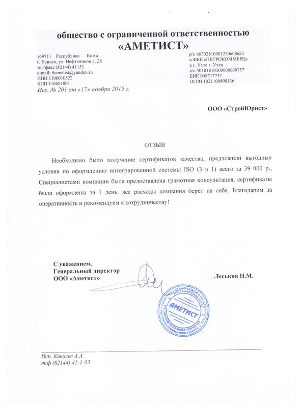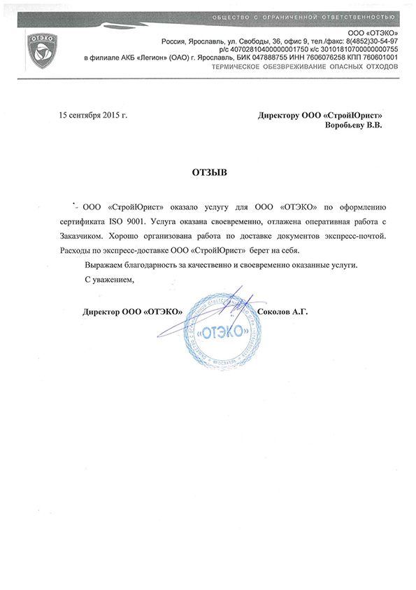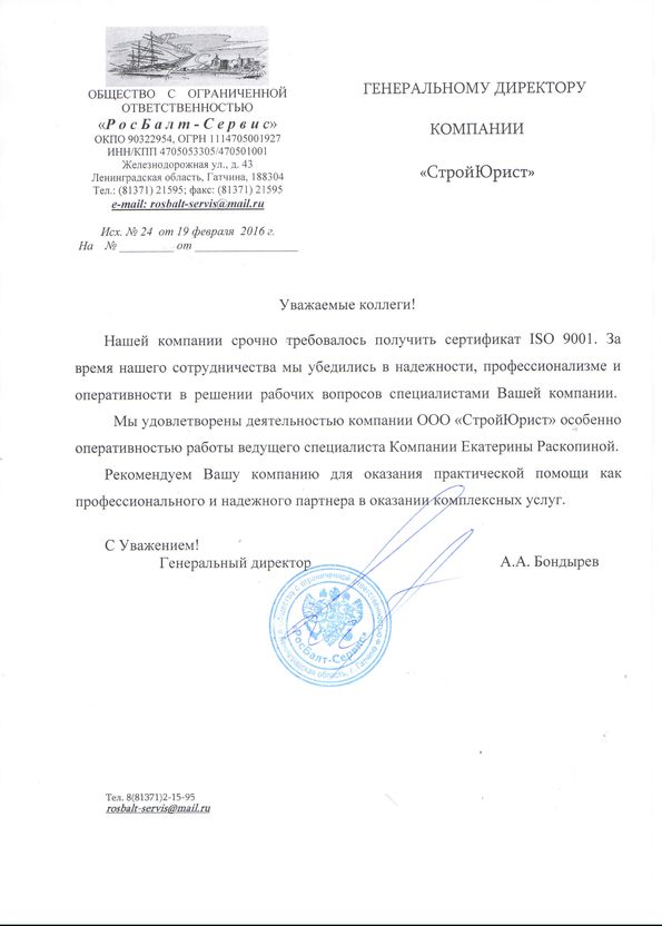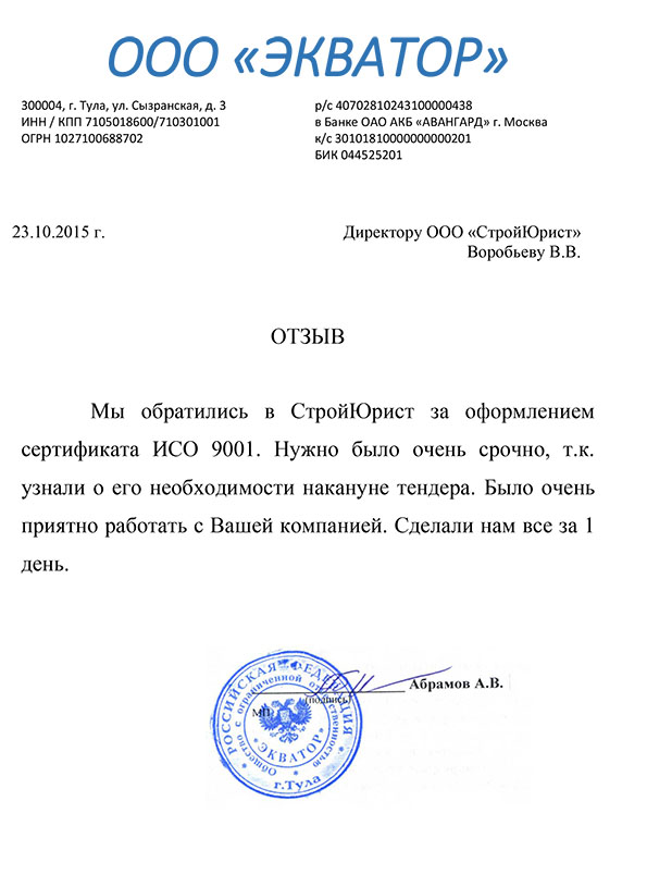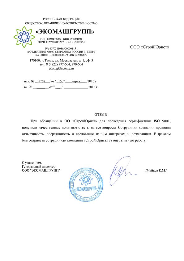 Отзывы клиентов "СтройЮрист" по ISO в Королёве