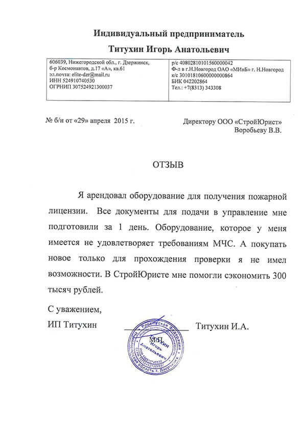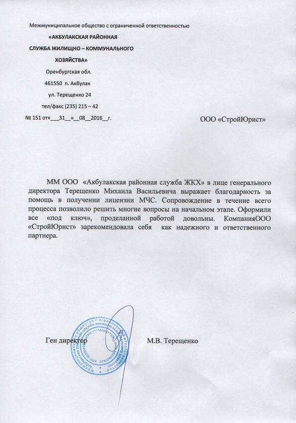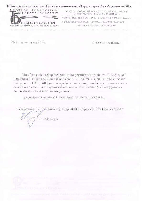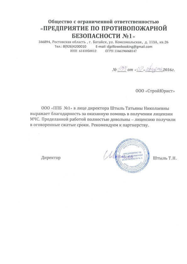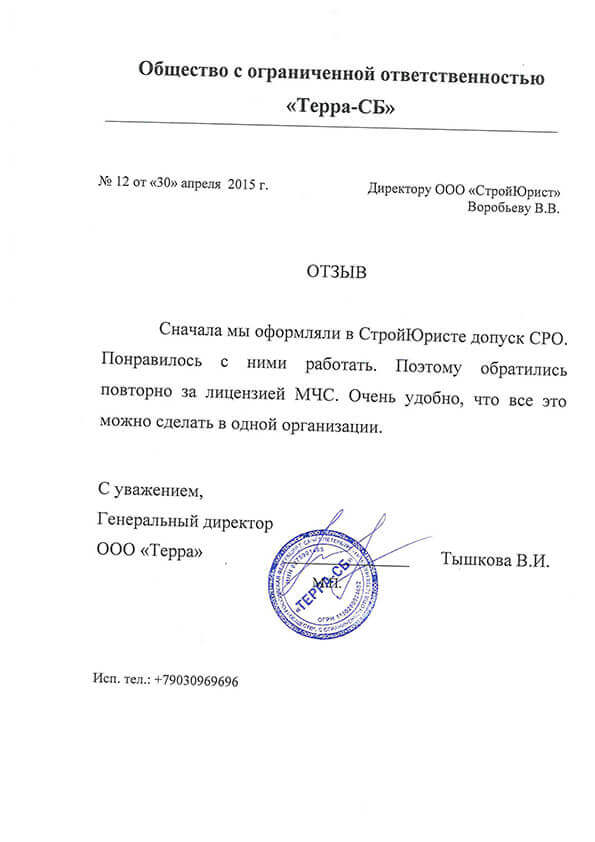 Отзывы клиентов "СтройЮрист" по лицензированию МЧС в Королёве