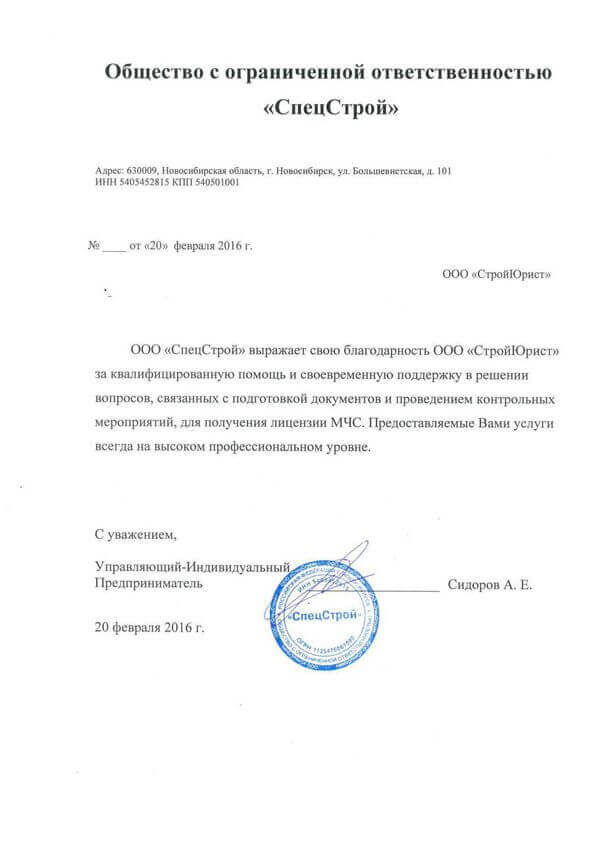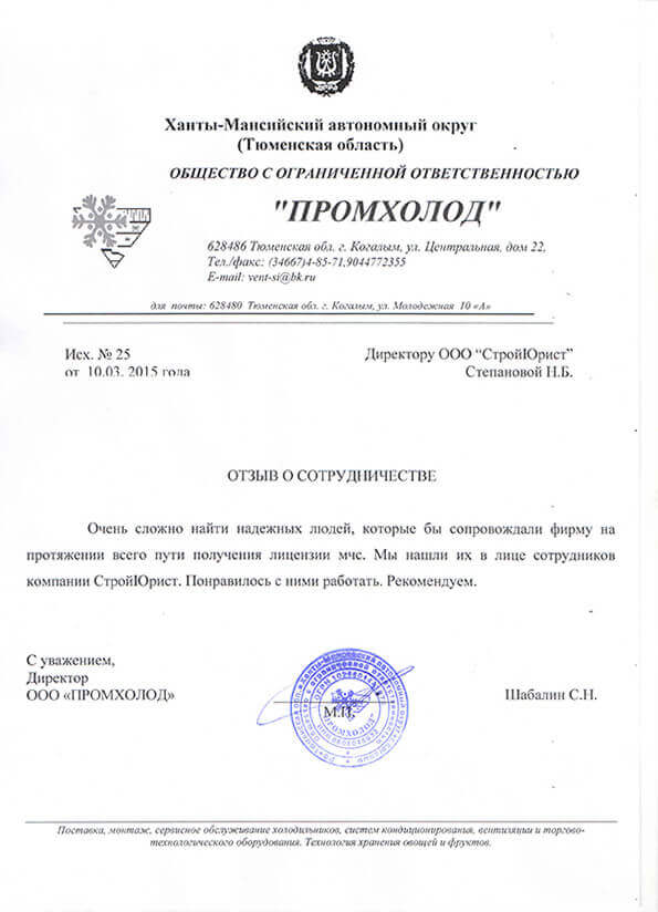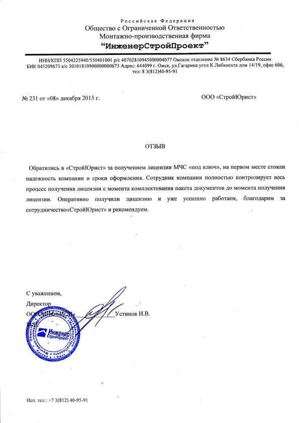 Отзывы клиентов "СтройЮрист" по лицензированию МЧС в Королёве