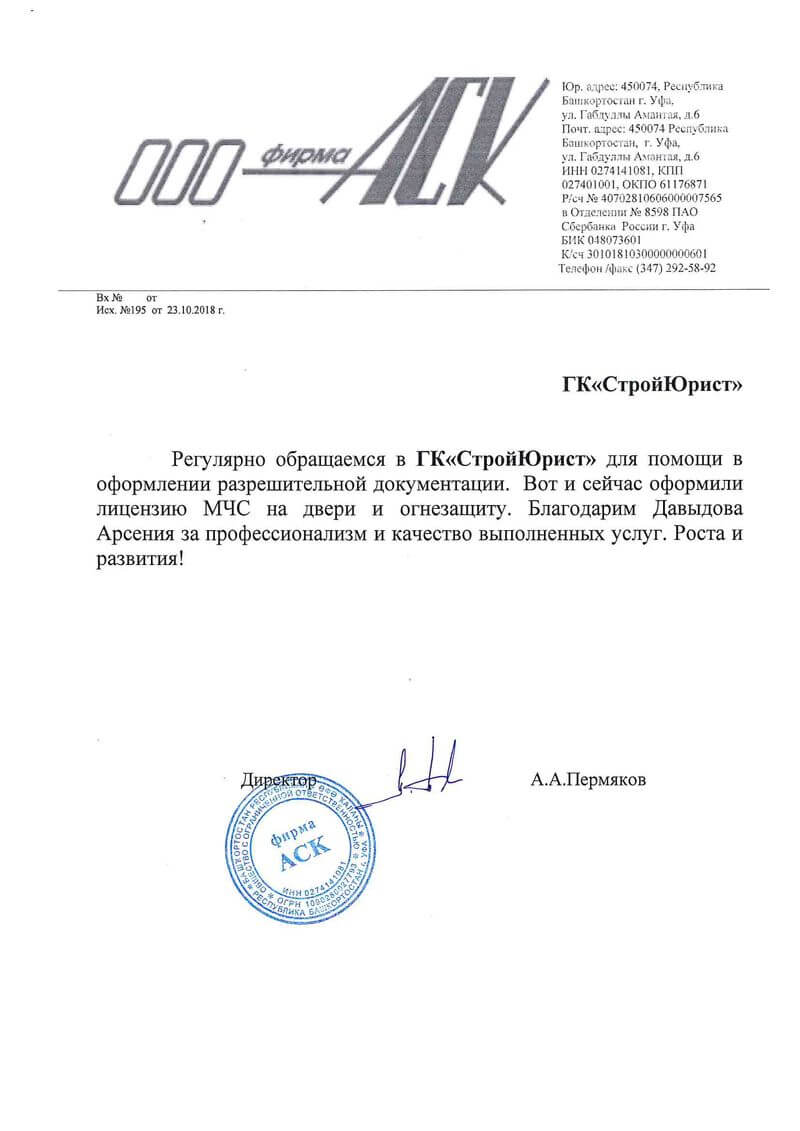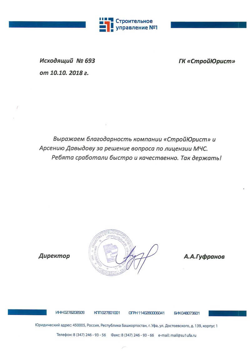 Отзывы клиентов "СтройЮрист" по лицензированию МЧС в Королёве