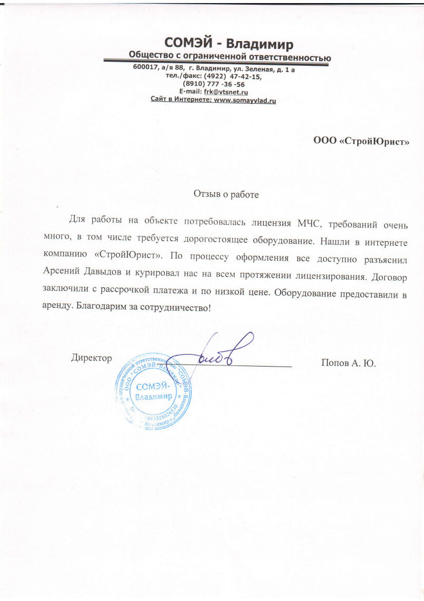 Отзывы клиентов "СтройЮрист" по лицензированию МЧС в Королёве