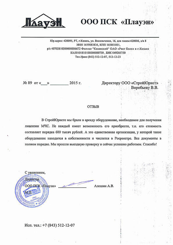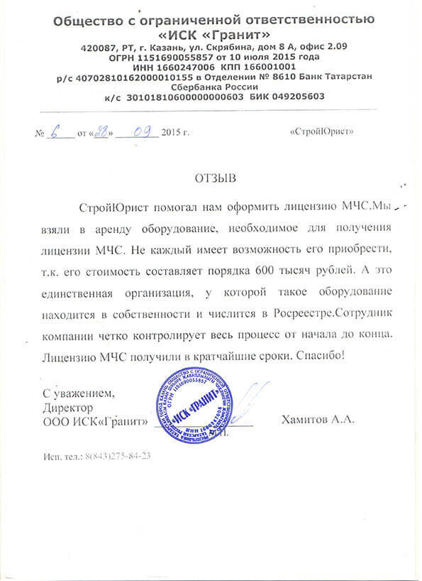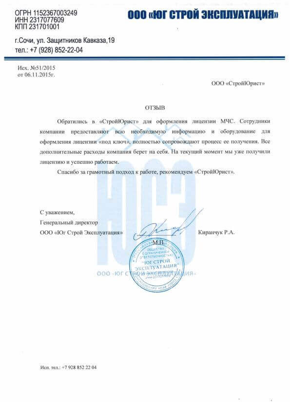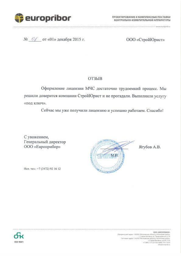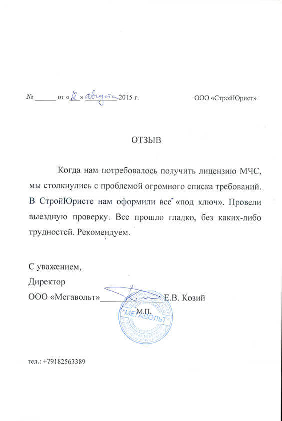 Отзывы клиентов "СтройЮрист" по лицензированию МЧС в Королёве