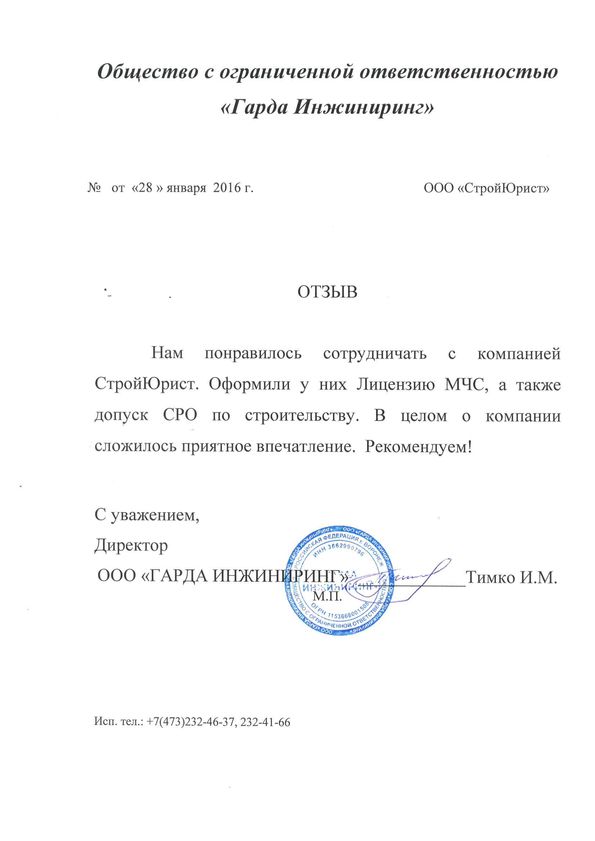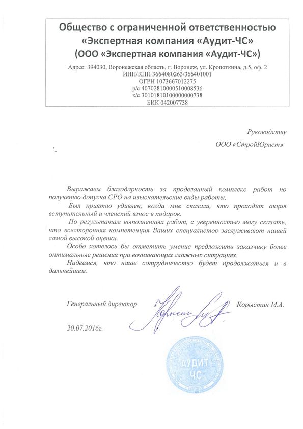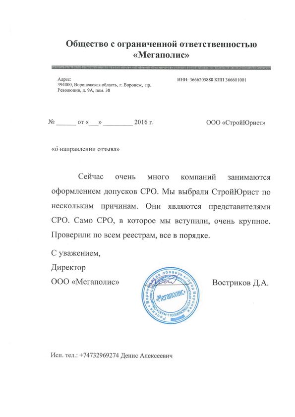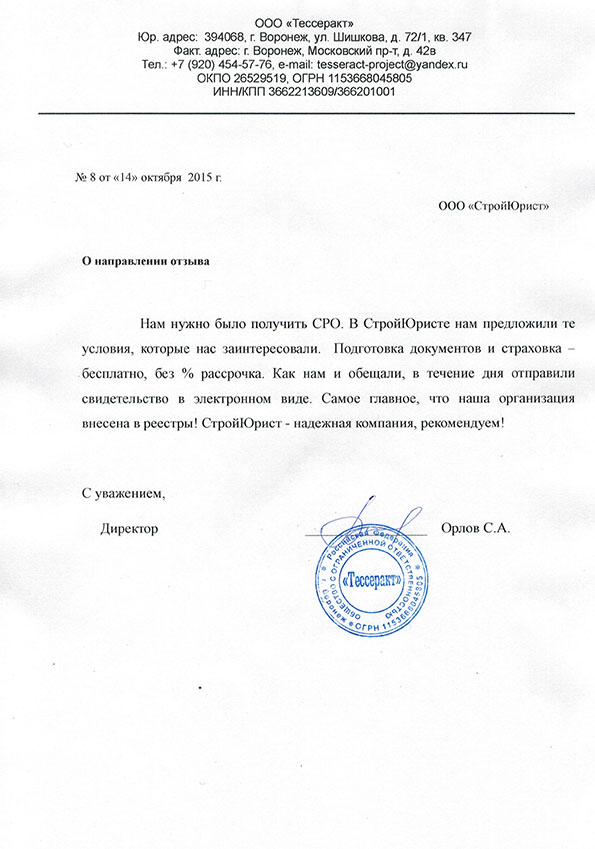 Отзывы клиентов "СтройЮрист" по вступлению в СРО в Королёве