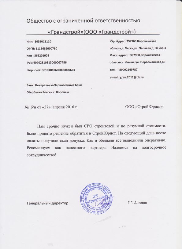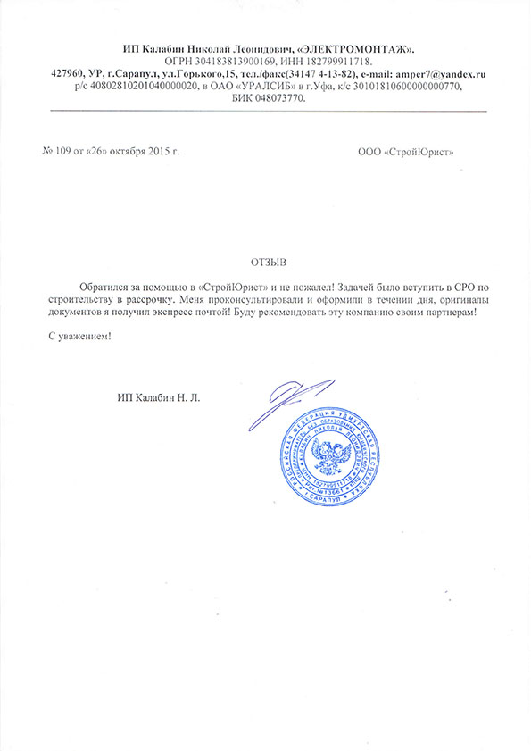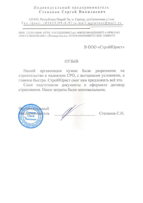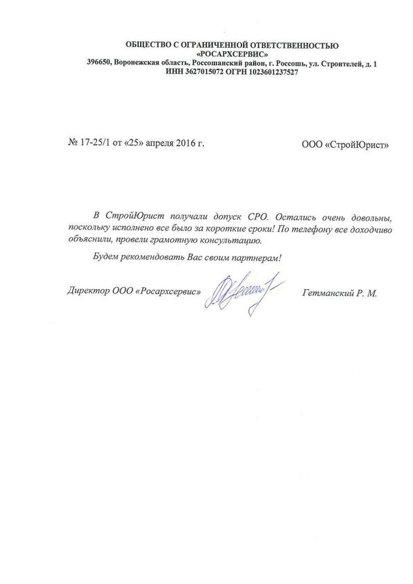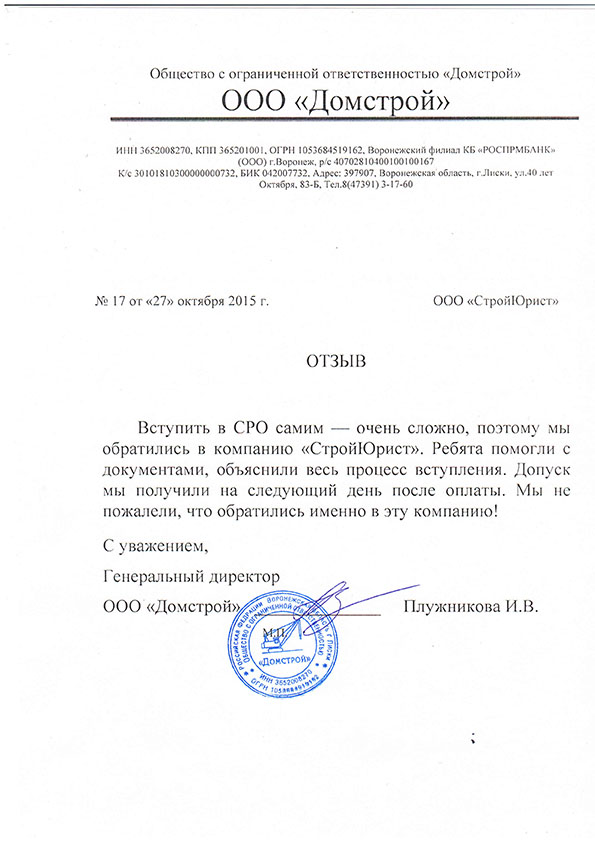 Отзывы клиентов "СтройЮрист" по вступлению в СРО в Королёве