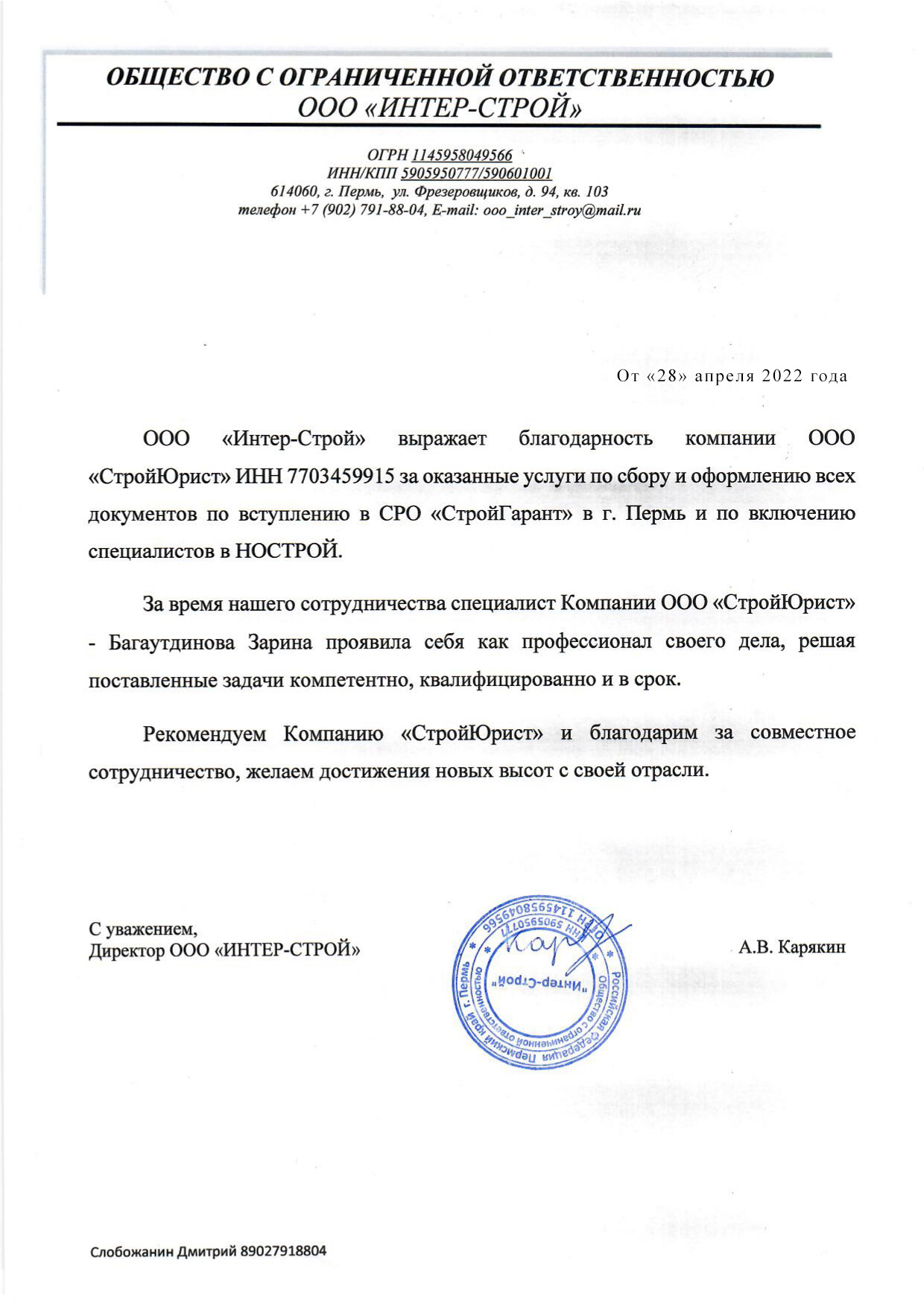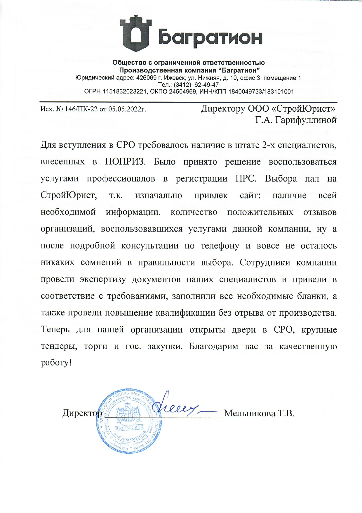 Отзывы клиентов "СтройЮрист" по вступлению в СРО в Королёве