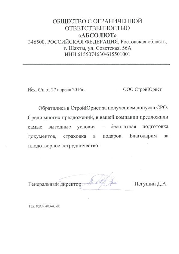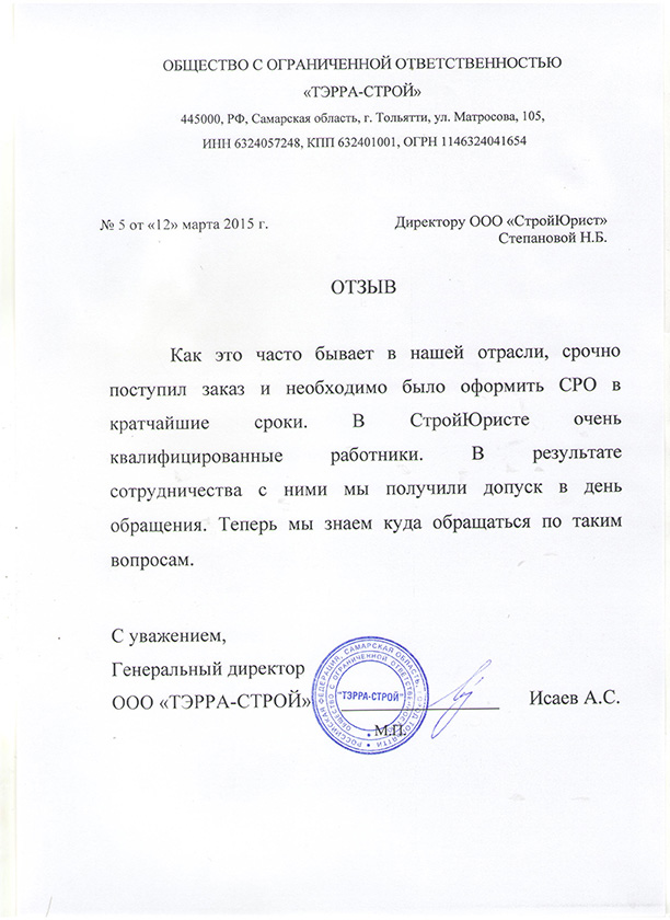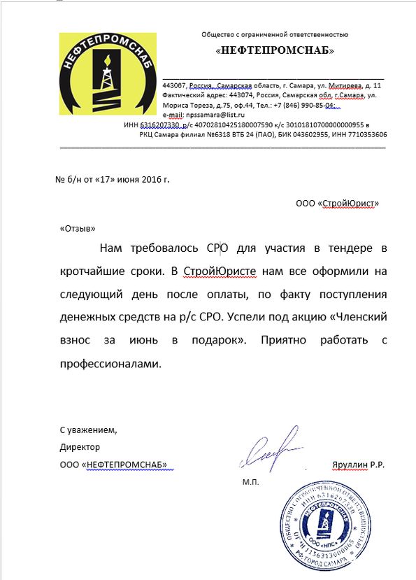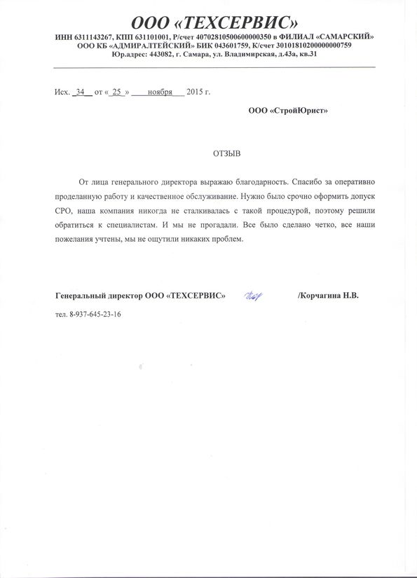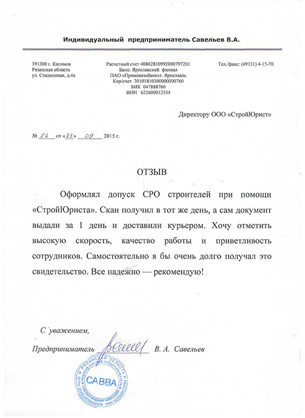Отзывы клиентов "СтройЮрист" по вступлению в СРО в Королёве
