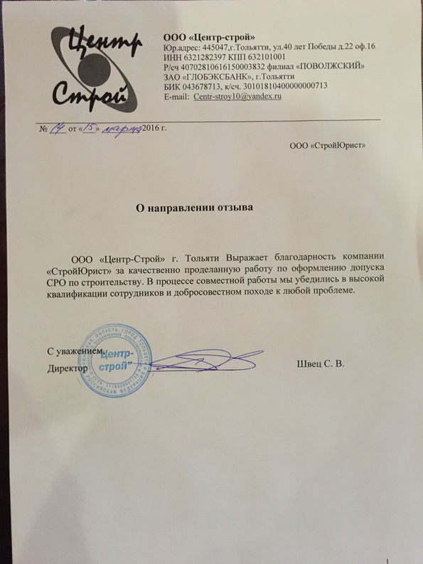 Отзывы клиентов "СтройЮрист" по вступлению в СРО в Королёве