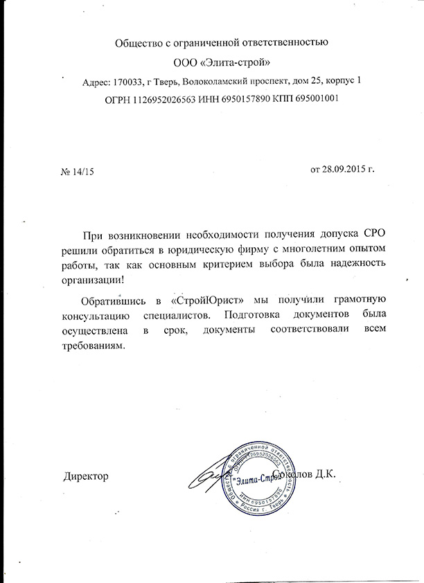 Отзывы клиентов "СтройЮрист" по вступлению в СРО в Королёве