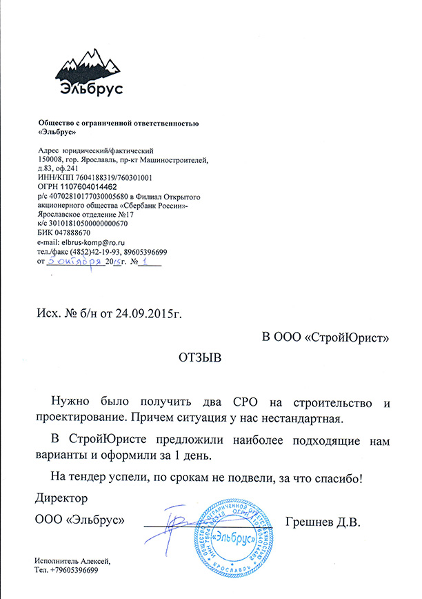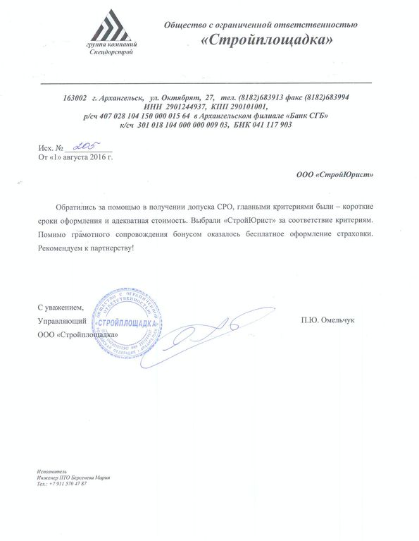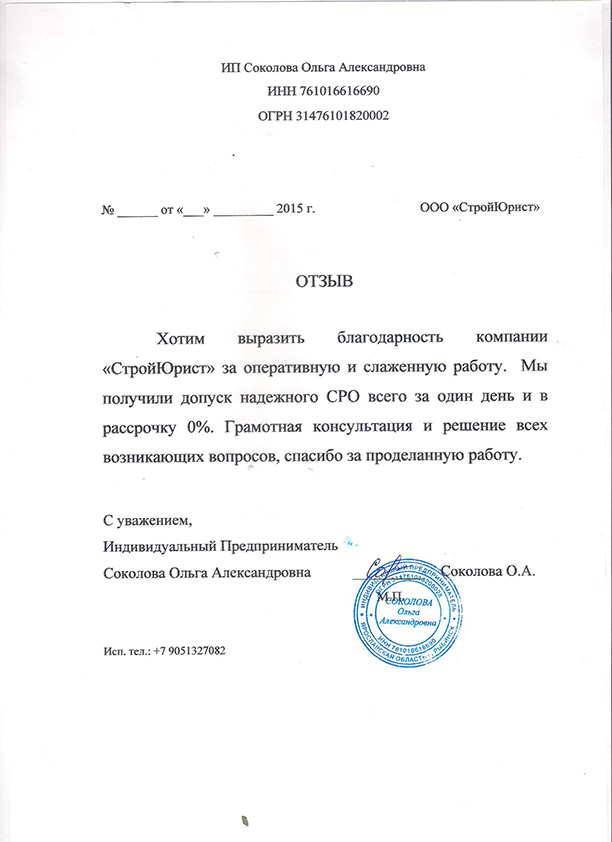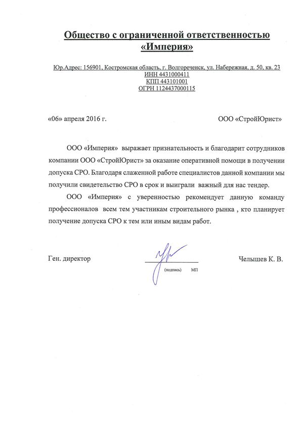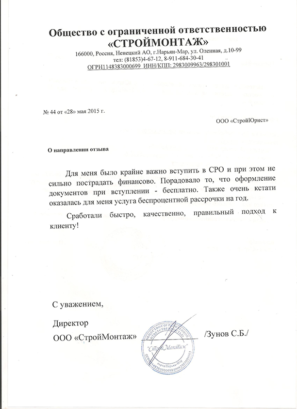 Отзывы клиентов "СтройЮрист" по вступлению в СРО в Королёве
