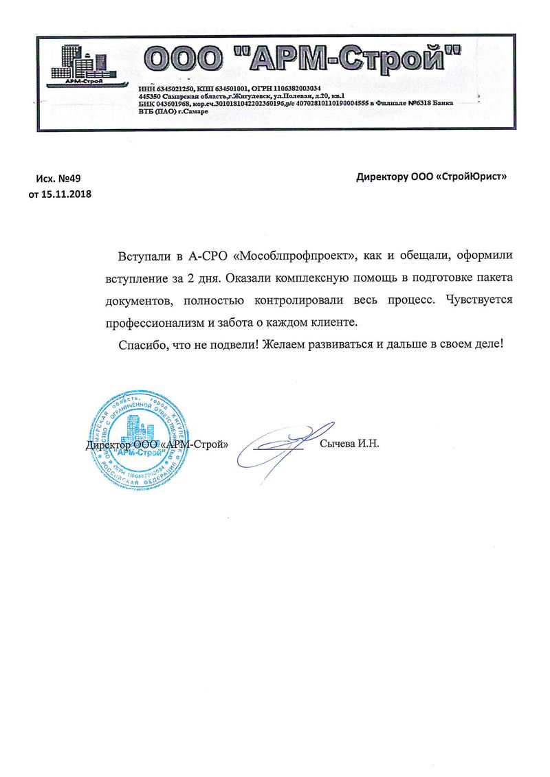 Отзывы клиентов "СтройЮрист" по вступлению в СРО в Королёве