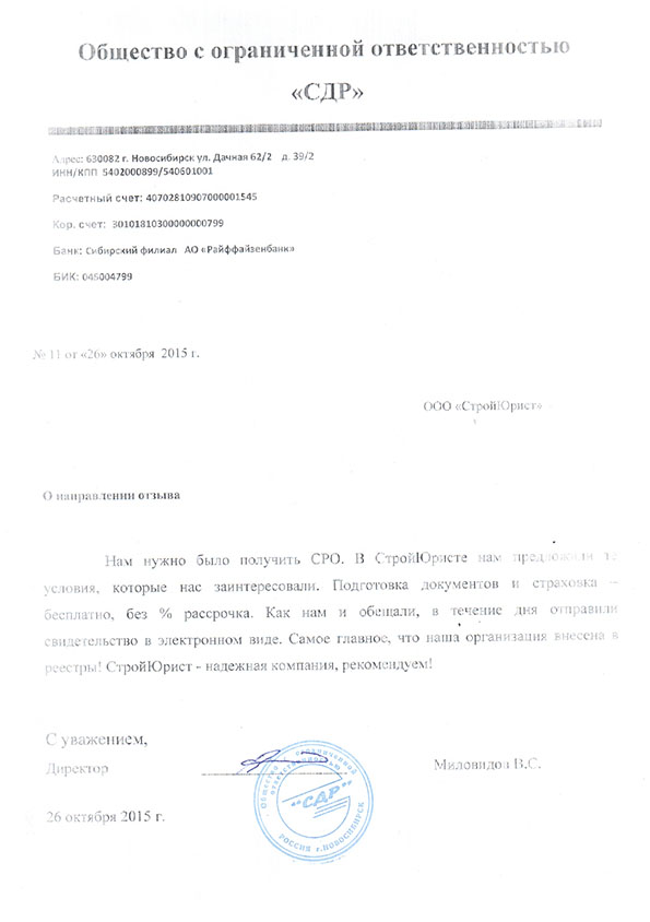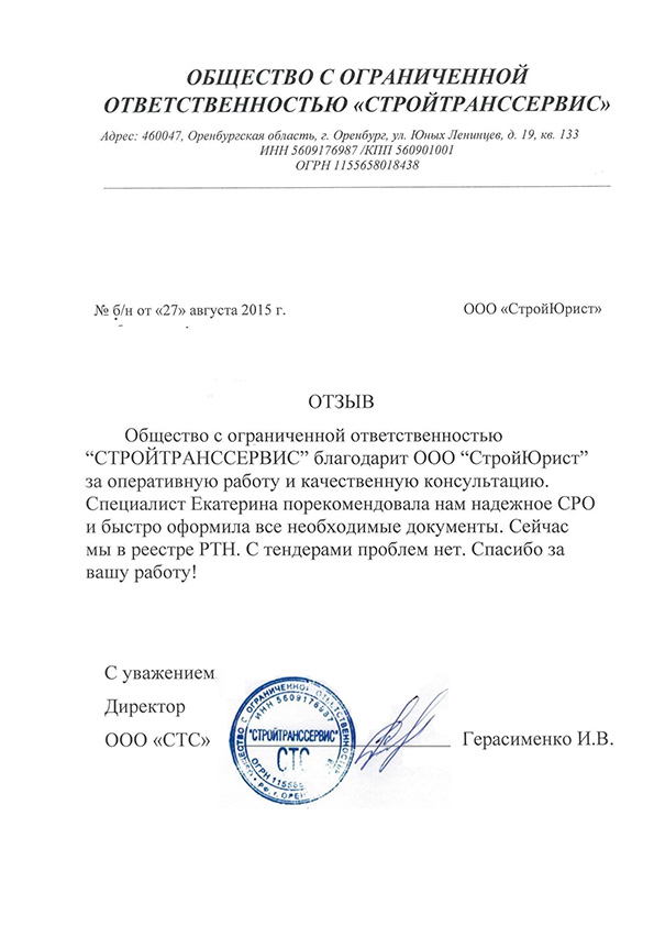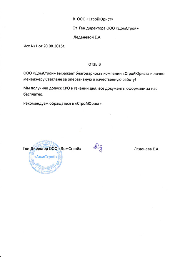 Отзывы клиентов "СтройЮрист" по вступлению в СРО в Королёве
