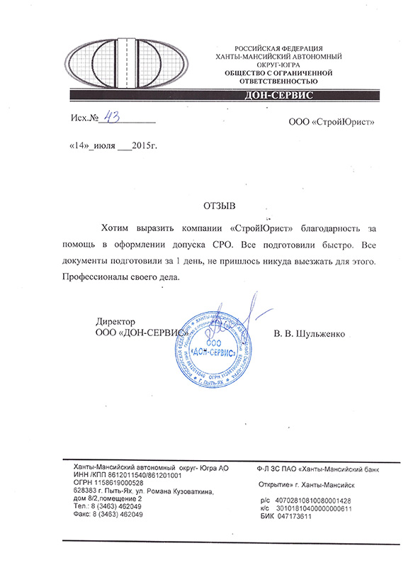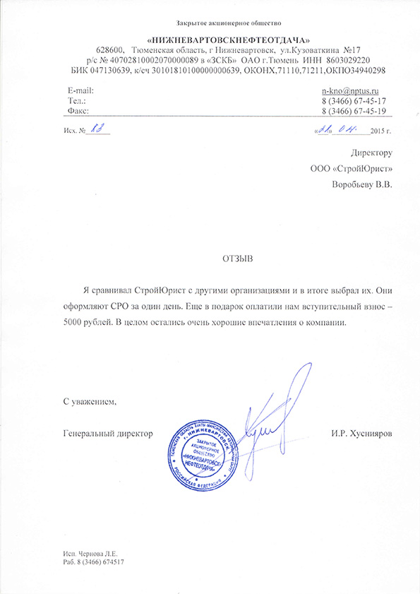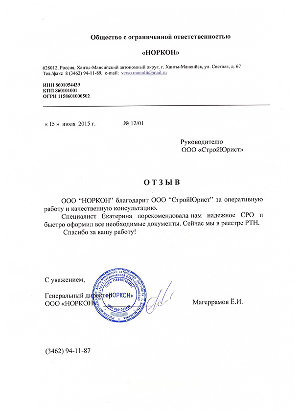 Отзывы клиентов "СтройЮрист" по вступлению в СРО в Королёве