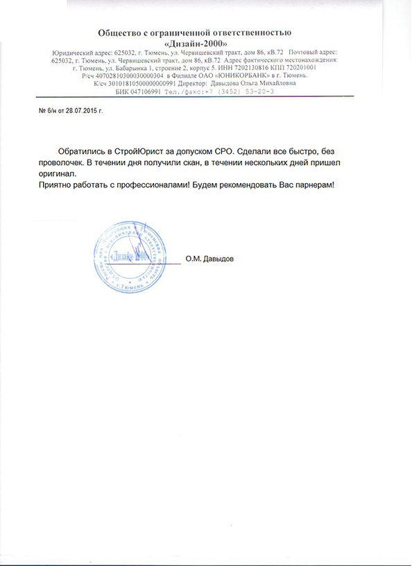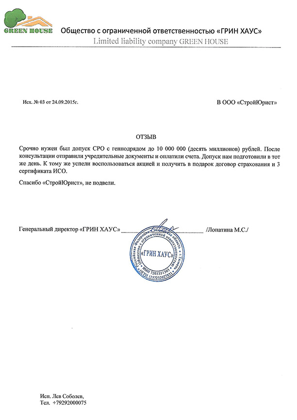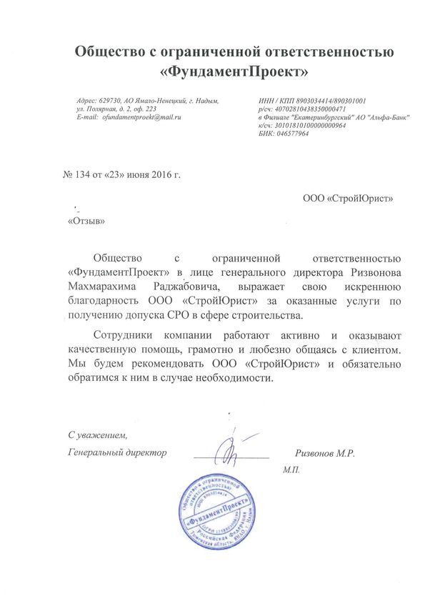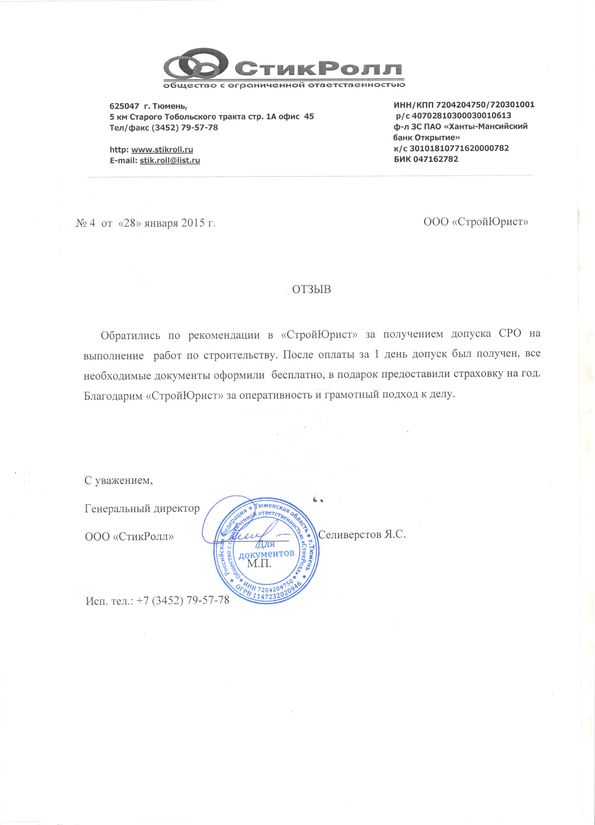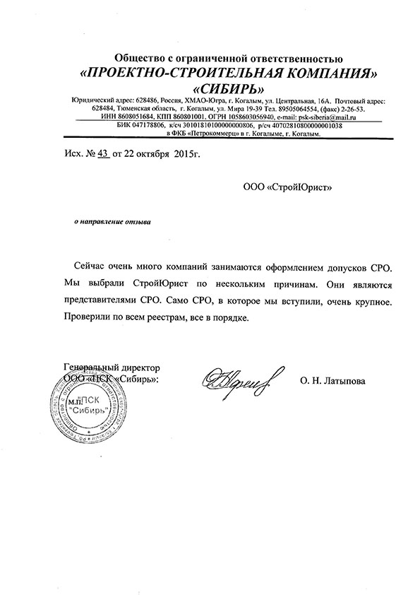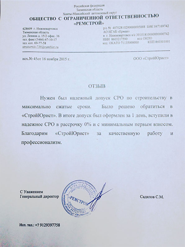 Отзывы клиентов "СтройЮрист" по вступлению в СРО в Королёве