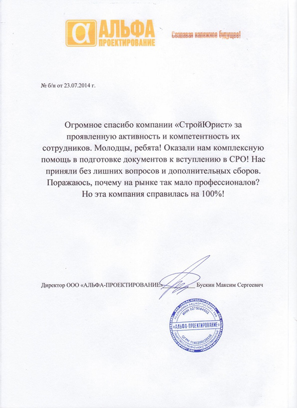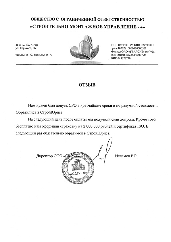 Отзывы клиентов "СтройЮрист" по вступлению в СРО в Королёве