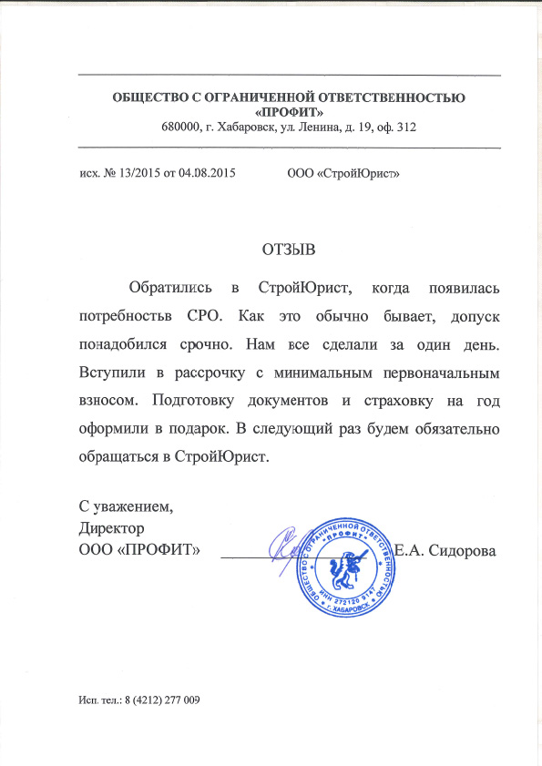 Отзывы клиентов "СтройЮрист" по вступлению в СРО в Королёве