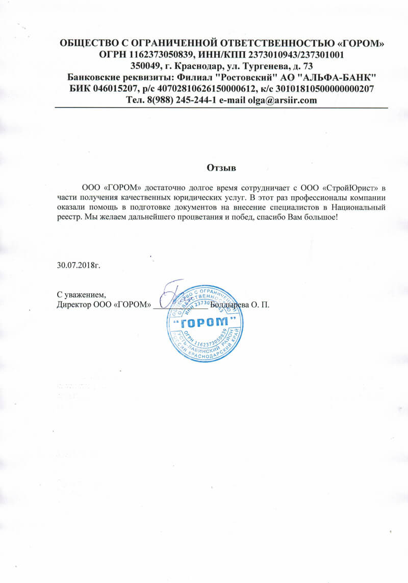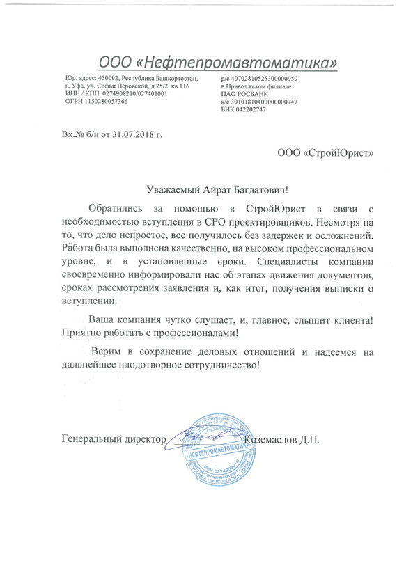 Отзывы клиентов "СтройЮрист" по вступлению в СРО в Королёве